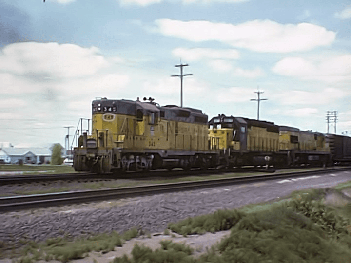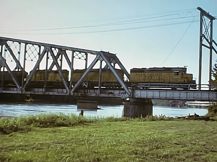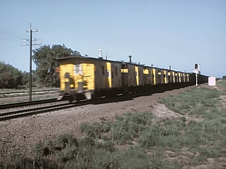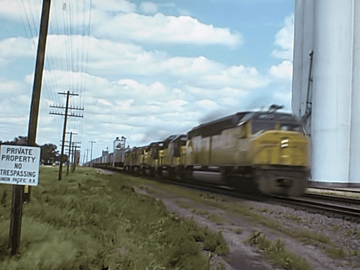 Delves right in, at Fremont, Nebraska. Drives towards the destination at North Platte. Many Union Pacific freights are encountered along the way. GP30 units are common. A caboose on every train!