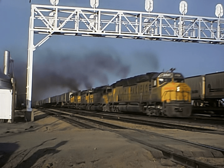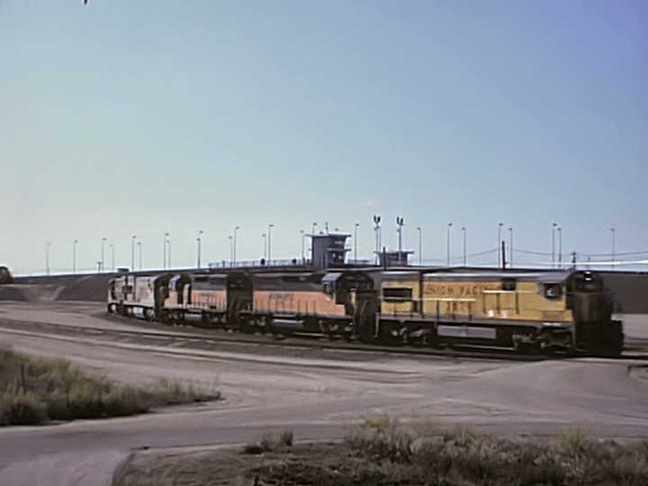 He films at the West end of Bailey Yard. Trains depart and enter on the yard leads here. Jonathan travelled to find the DD40 locomotives. He found them, in this show! Numerous freights shown. Departures and arrivals. A highlight.