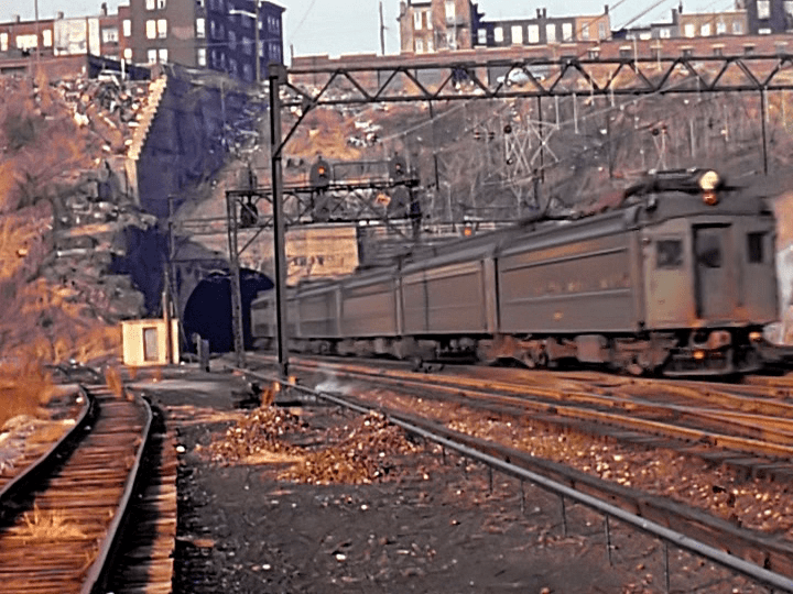 Hoboken was electrified for cleaner trains and faster acceleration.This equipment was replaced in 1984. The three lines are all shown.