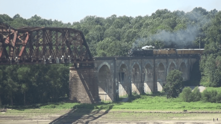 At Thebes, Illinois. Crosses a huge bridge. One stop is scheduled at Chester.
