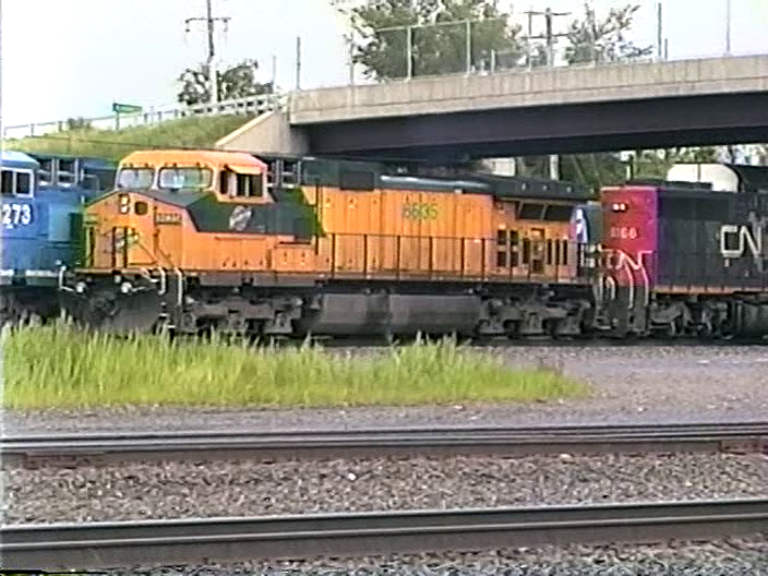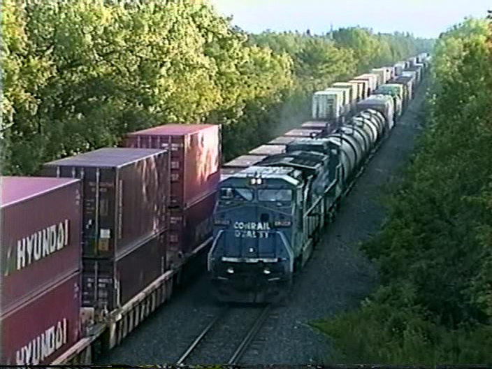 The East-West traffic is on the Chicago Lines. A constant stream of freights! Above, Two Selkirk Yard- Indiana trains meet.