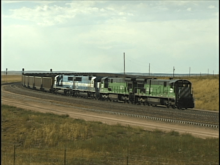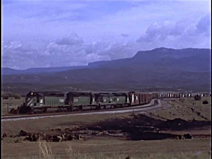 A fine look at some of the Burlington Northern. The inclusion of many freight cars is great. Huge Railroad. This is a taste.