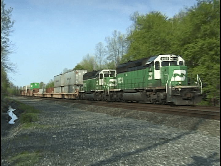 Idaho has SD40s that are plentiful. Run through and leased engines appear. This is a parade of BN freight trains circa 1995!