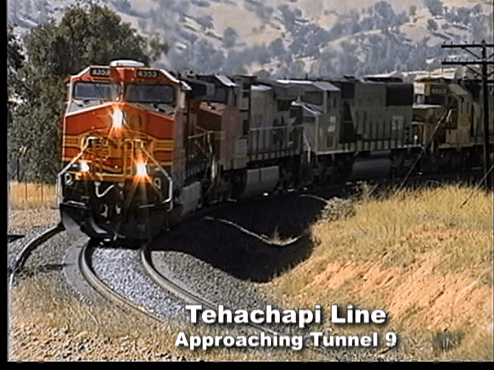 This lash-up displays 4 schemes on BNSF. Diverse lash-ups of early BNSF. The Tehachapi Pass area leaves viewers wanting more.