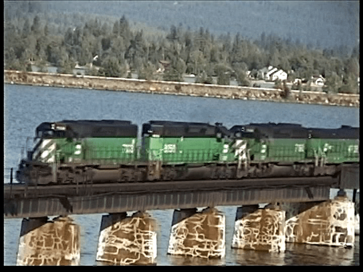 A fine look at some of the Burlington Northern. The inclusion of many freight cars is great. Huge Railroad. This is a taste.