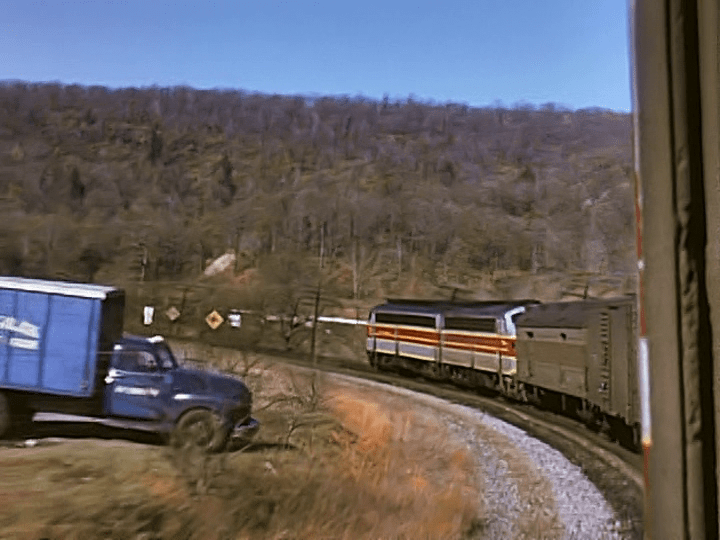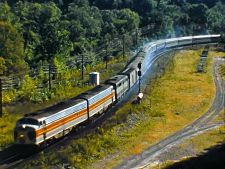 Begins in a Cab ride with an odd cut in. Inside view, from an EMD E8 unit. A Phoebe Snow ride along. Some vestibule shots, as well, during the journey. Other Phoebe Snow and additional EL passenger trains, are viewed.