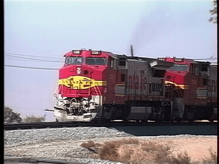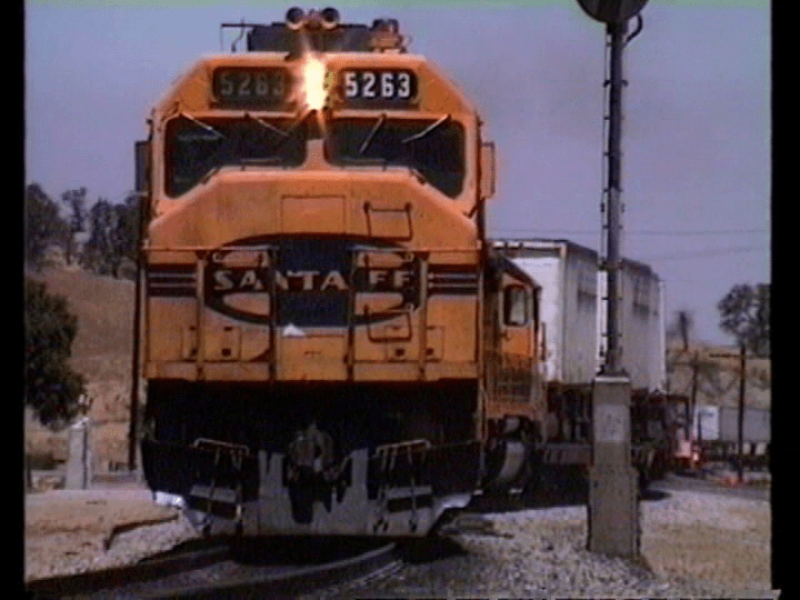 He seeks out cowl unit Santa Fe engines on this visit. SDF40-2 5263 creeps onto the mainline.