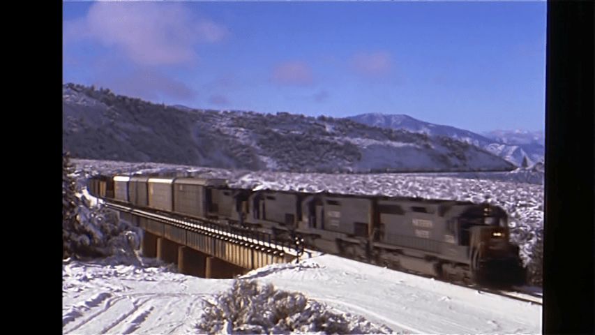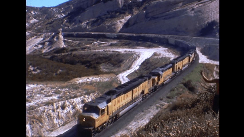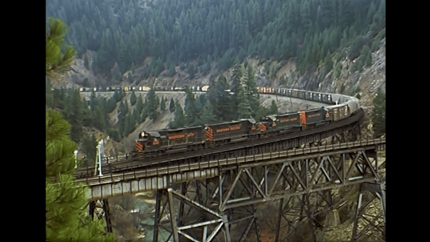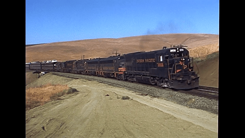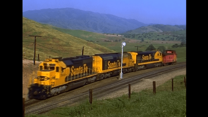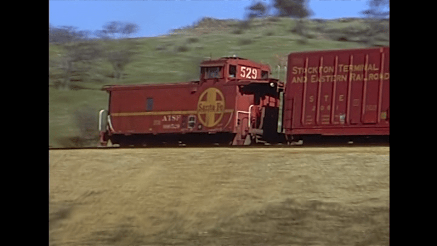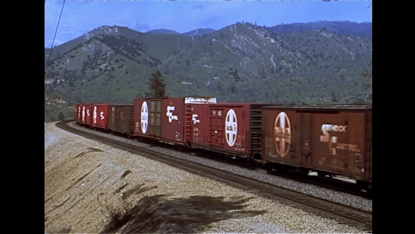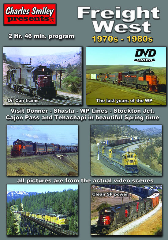 The focus is on Freight Cars. Western locations by Chapter. It is a hard to find subject on all movie films. Three main railroads are highlights: Santa Fe, Southern Pacific, and Western Pacific.