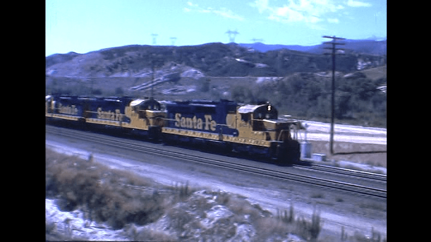 A rare find! Two Santa Fe SD26 locomotives lead a lash-up on Cajon Pass.
