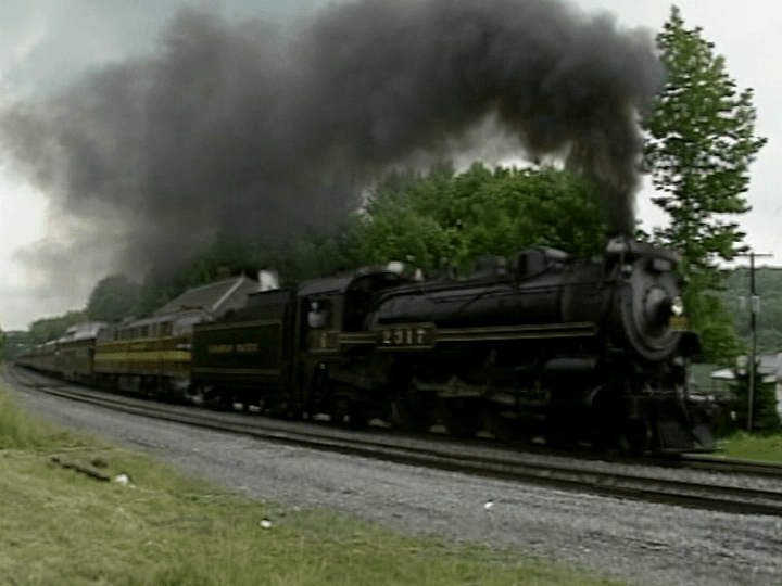 Canadian Pacific 2317 with Susquehanna E8 and train. Arrives at Moscow. Thirteen miles.