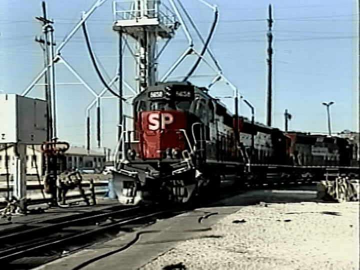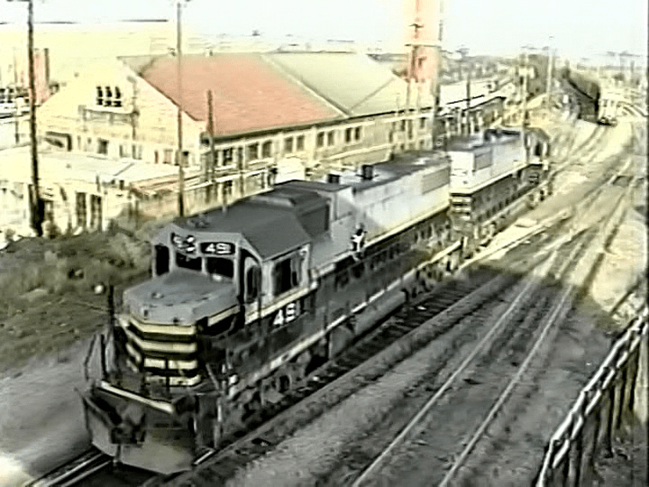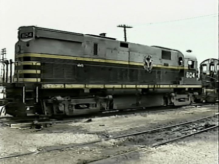 Note the Steam Era structures to the left. More is seen in the show. Diesel Shops, an old turntable, water tank.