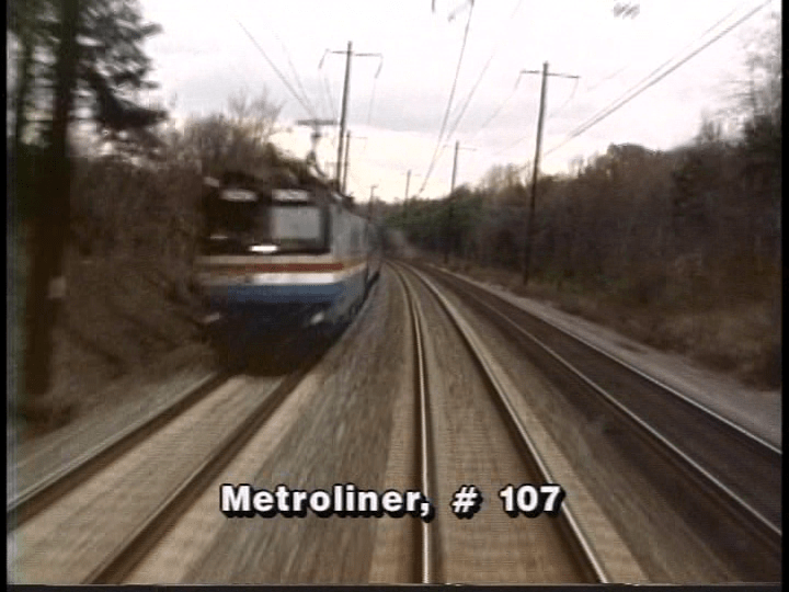 Ride on a trip, in the cab of an Amtrak AEM-7 locomotive. Metroliner action is Washington DC. to Philadelphia, PA. Speeds do attain 125 mph.