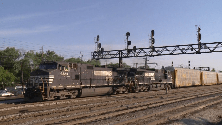 Finally, a freight train. A Norfolk Southern led auto racks. 9323 and 9212. This seems like a railroad quiet zone.