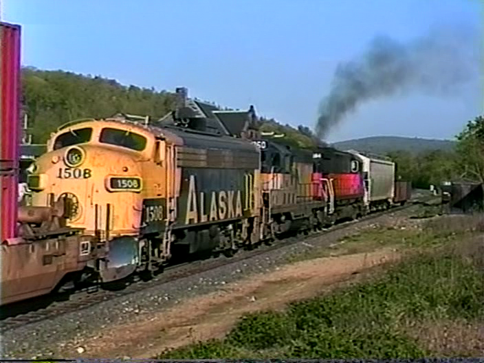 MLW C-420 units in Mass Central paint. The Alaska F7 is also on the roster. Alco C424 in front of this lash-up at Palmer.