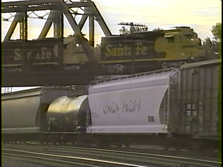 Mainline trains with assorted railroads on various lines. Burlington Northern has substantial traffic. Santa Fe has their large Argentine Yard at Kansas City. Southern Pacific and Union Pacific freights, as well.. Norfolk Southern runs a joint operation with BN.