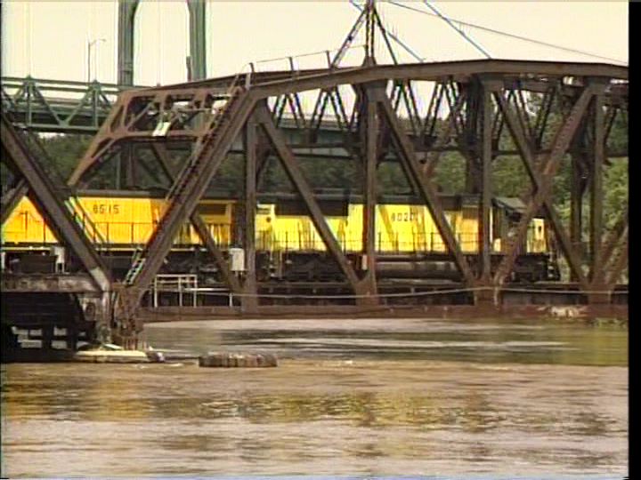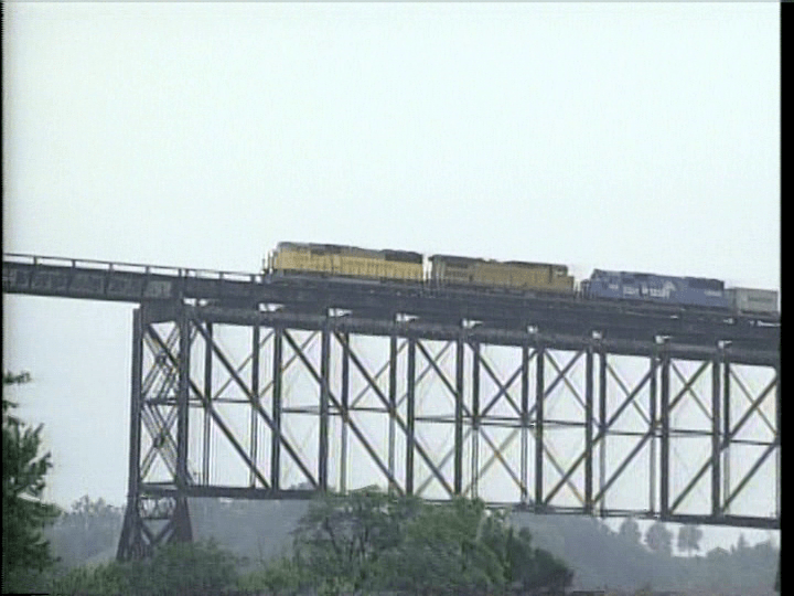 Kate Shelley Bridge over Des Moines River. Union Pacific and Conrail units.