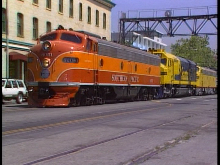 Operation Lifesaver Special to San Diego. Involves: Southern Pacific, Union Pacific E9A 951and Santa Fe FP45. SP E9A 6051 street runs in Oakland.