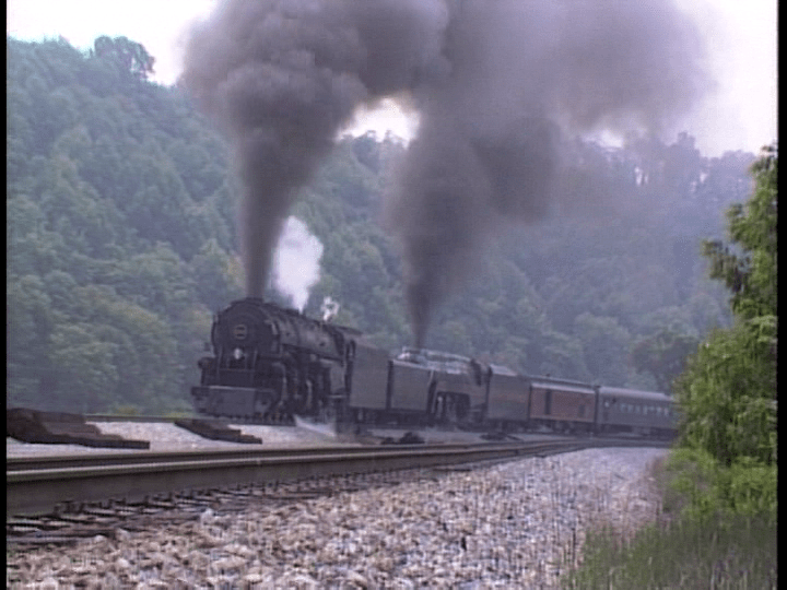 Norfolk and Western 1218 at Bluefield. It gets swapped for the 611. At Schaeffer Crossing. Both Steam are coupled with 1218 on the point. Robert Claytor Jr., operates the 1218.