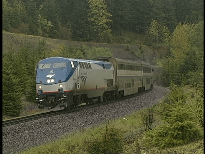 Amtrak Empire Builder. The Portland section exits a tunnel. This is seen before the Steam Train passes through.
