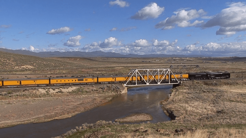 The venerable Union Pacific 844 is the famous Northern type in many films. This show is focused on scenic highlights in Nevada and California.