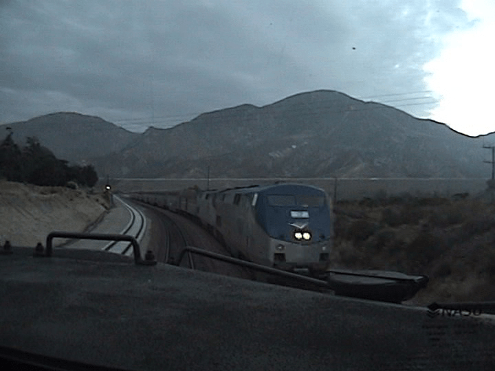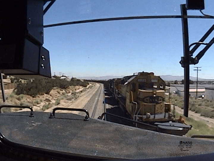 At Victorville. Overtaking a UP freight led by UP 4258 is a solid sequence that lets the show breathe.