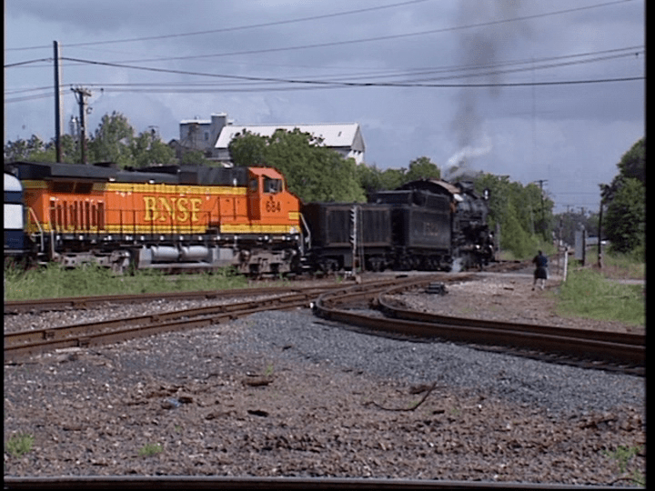 The 1522 was restored and completed in 1988. May 26 and 27. Haslet was the initial start point for excursions. Flying BNSF flags. This Steam locomotive is clean! BNSF 684 GE C44-9W, runs as a part-time helper and for protection.