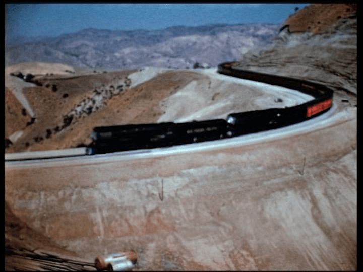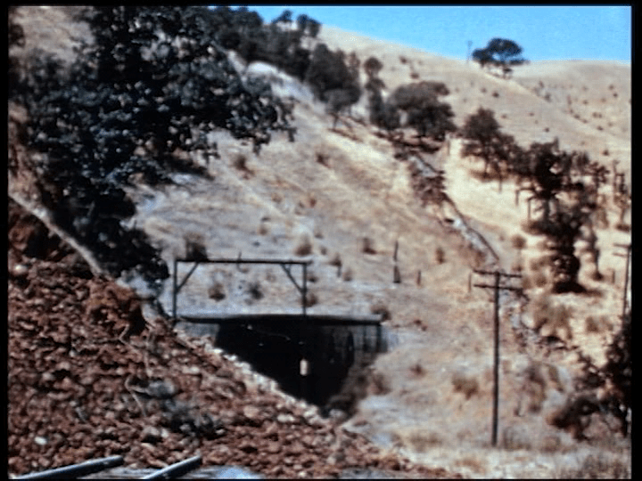 Tehachapi line. Bealville to Cliff. A separate vintage film. Different narration. Powerful earthquake. Interior tunnel damage seen. Tunnels were repaired, daylighted and closed. Tunnel 4 is blocked by landslide. This tunnel was daylighted. Major reconstruction in Tehachapi area is shown.