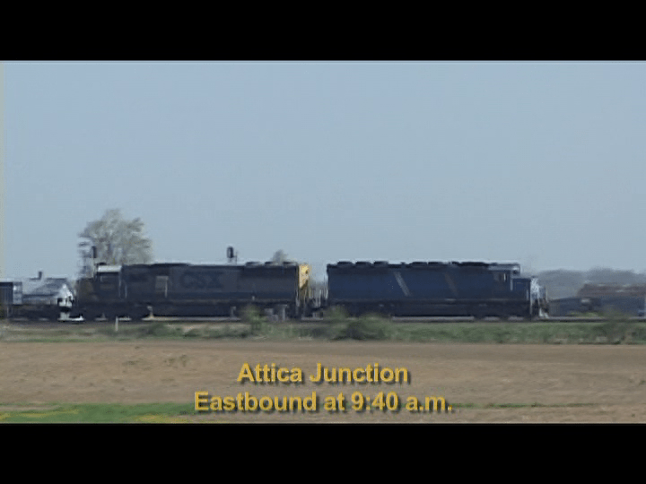 Fostoria is the initial location at 8:00 am. CSX on former Chesapeake and Ohio tracks.. Crossing with Norfolk Southern on ex: Nickel Plate Road. Tower F is here.