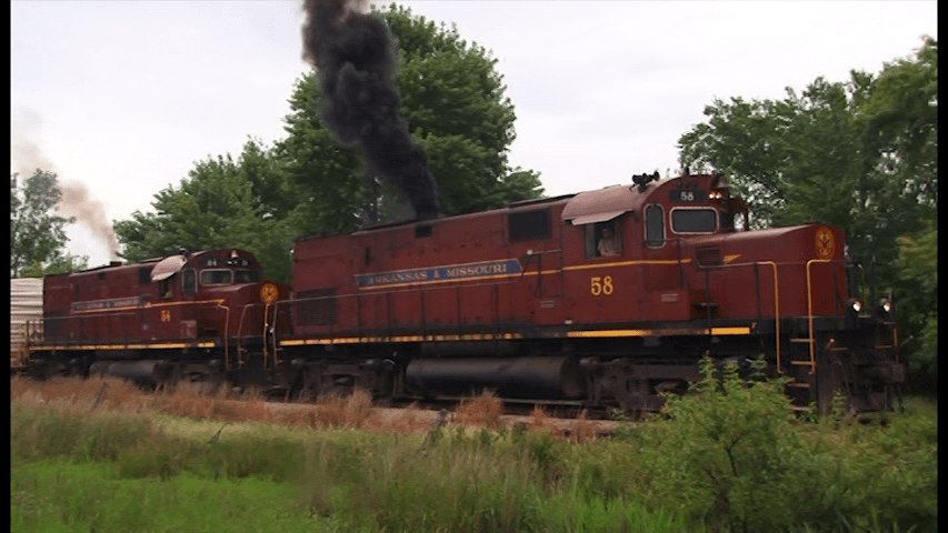 Arkansas has Springdale. See the Arkansas and Missouri with two Alco C-420 units on a slow-moving local freight. Various A&M trains are seen in operation.