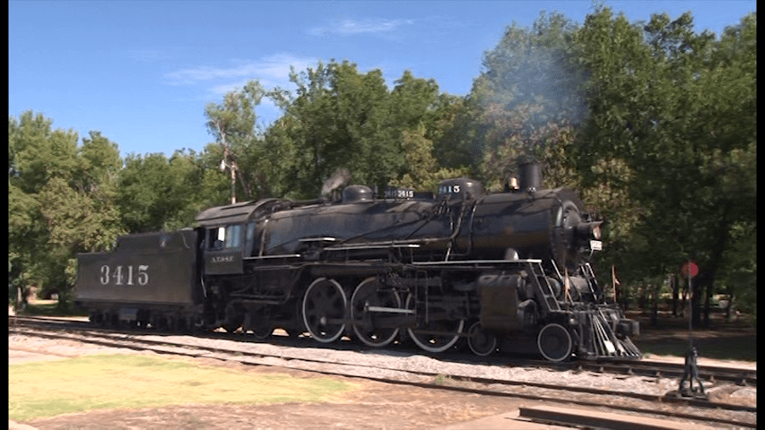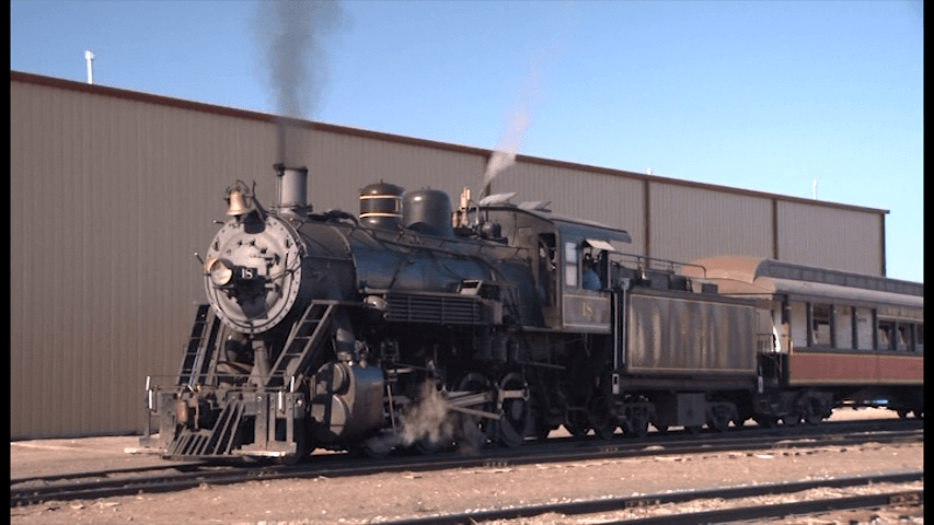 Abilene and Smokey Valley. An Alco switcher. This Baldwin steam locomotive #3415 is again operational. The 3415 is a former Santa Fe engine. Pulls a speed restricted passenger move.