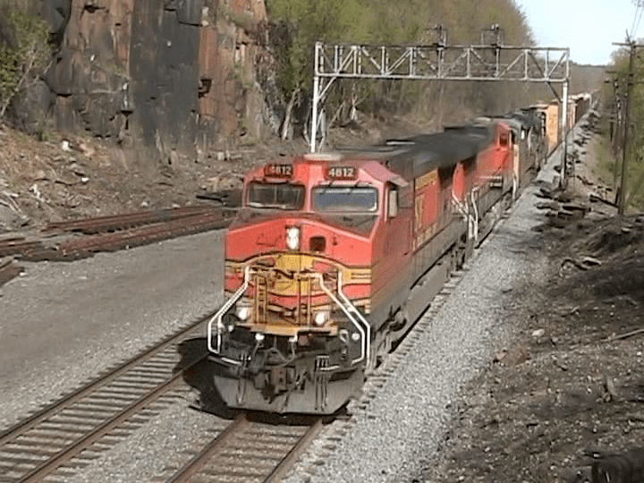 Q381 at Little Falls. BNSF 4812 on the lead. Leased power is common on this line.