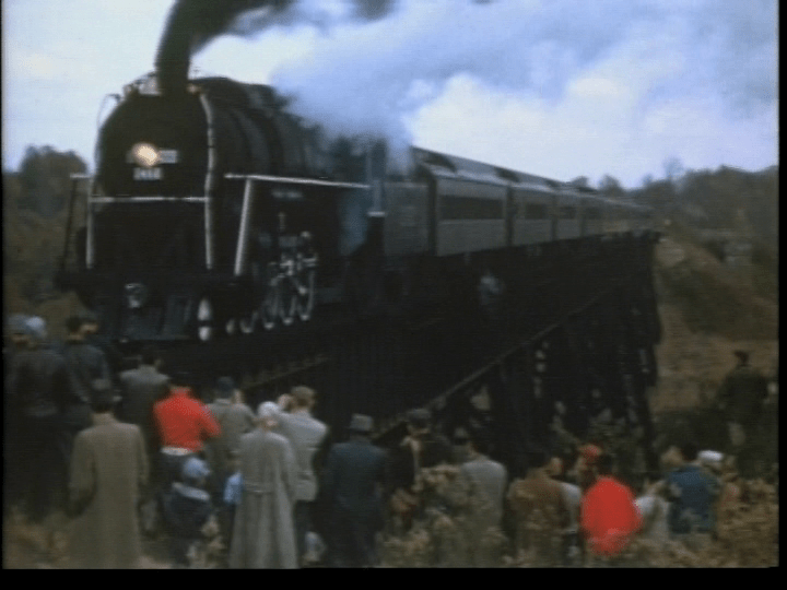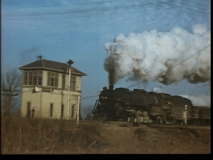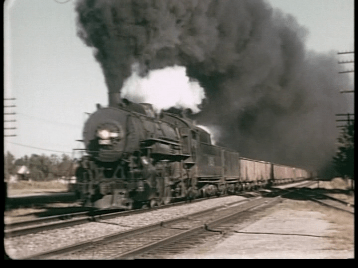 1270 Mikado at Macomb, Mississippi in 16mm color film. Illinois Central fostered over 350 in 1954.