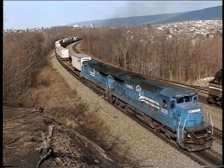 Chester Kamuda goes trackside in the Altoona area. Filmed at a trackside Brickyard location. Conrail is the railroad, and this begins in 1995. Quickly goes to majority in 1998.