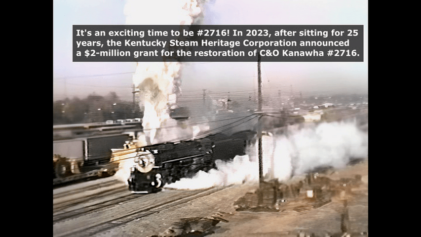 The C&O Kanawah 2716 at Atlanta. This has an outstanding audio track scene from 1982. Hear the locomotive booster engaged as the engine struggles uphill. Shown above in the different location. Read the information box.
