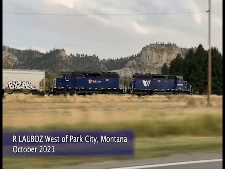 R LAUBOZ in 2019. The Bozeman Bullet. Laurel to Bozeman turn. The last two SD45 engines were still active. 346 and 355 are East of Muir, Montana. Model Railroaders, notice the simple scenery here.