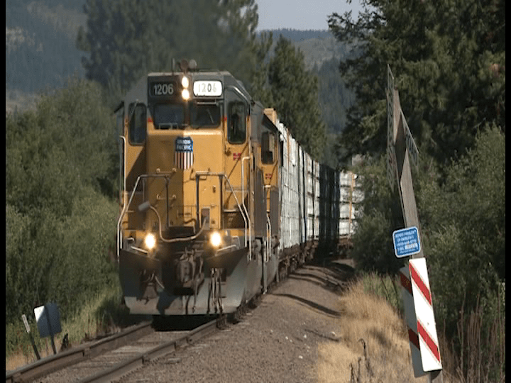 Union Pacific GP38-2 runs the St. Maries trackage on the old Milwaukee passenger mainline. Interchange with the St.Maries at Plummer, Idaho.