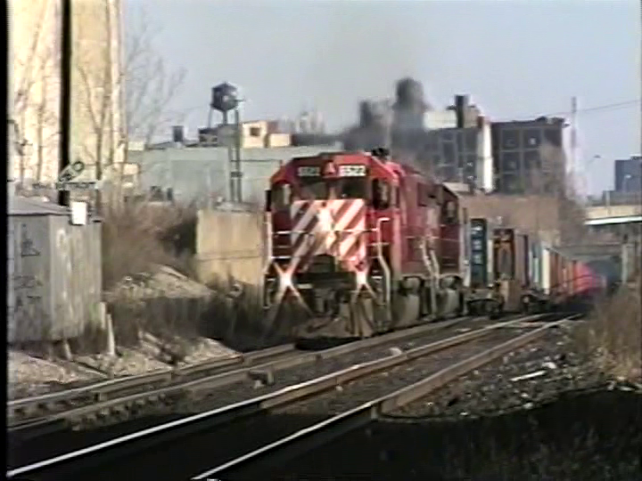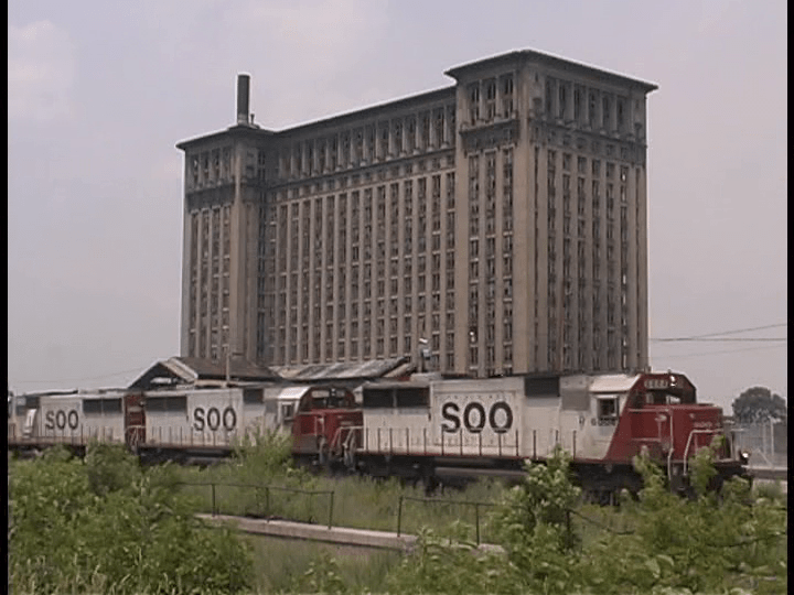 Soo Line passes the old Michigan Central building. Canadian Pacific trains pass this same location.