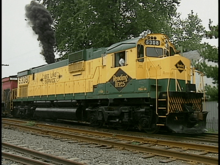C-630 5308 is restored in Reading Lines- Beeline Service scheme. This is on Reading and Northern. A 3000 horsepower diesel. Owned by Reading Technical and Historical Society. Working on a Special Excursion Train with an ex: GBW engine, nee Reading Lines.