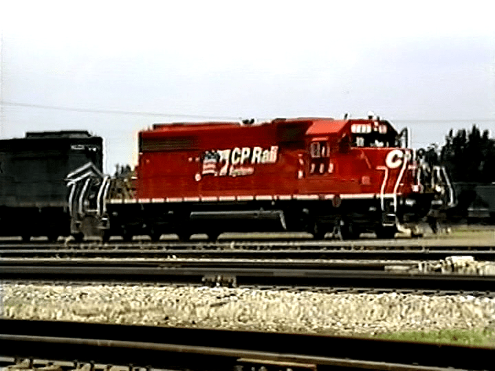 CP Rail dual flag leader at Minneapolis in 1995. Train 574 is at University near Northtown Yard.