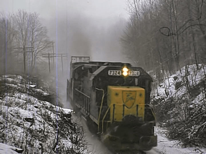 Starts in April 1979. Train OH-2. Oneonta to Hudson. Norfolk and Western lash-up led by NW 6162. Brandt, Pennsylvania. Had to look up this town. Many lighting problems early on. Backlit issues.
