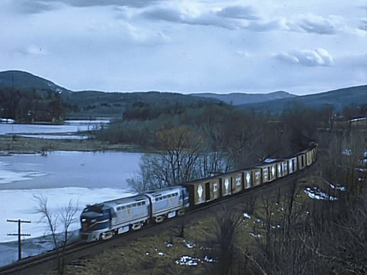 This one features some early diesels, that were still active at the time. Alco PA, Baldwin Sharks and more. Authentic sound. Super 8mm film with audio.