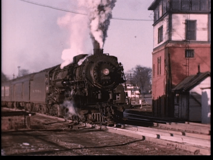 New York Central Big Four action in 1955. Ohio division. Also, Illinois Central 4-8-2’s. Chicago and Illinois Midland 2-10-2’s. Shot in: Ohio, Indiana, and Illinois. Filmed in 16mm. This fine cinematographer captured the end era of NYC steam. Jim Hawk recorded authentic sound.