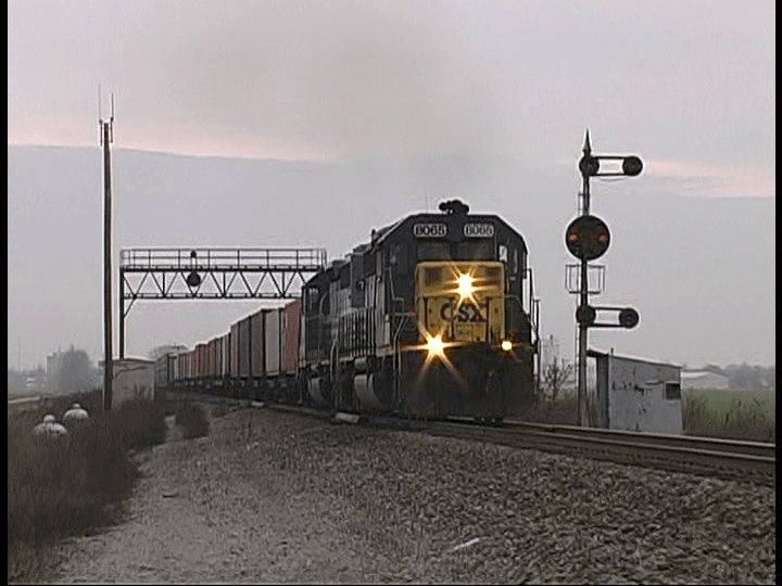 South of Deshler. CSX 8065 is going Southbound . Train is passing these old B&O style signals with a freight.