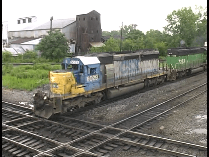 Marion. Train Q-279. CSX 8029, HLCX 7233 (ex: BN). Former Conrail route to Indianapolis. Extended look at the Marion vicinity.