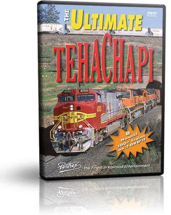 Ultimate Tehachapi contains 8 hours of video. A 2 DVD set. An extensive tour of the route. There are over 300 trains. BNSF, Union Pacific, and more. Filmed during a 3 year period. Begins in Bakersfield, California.