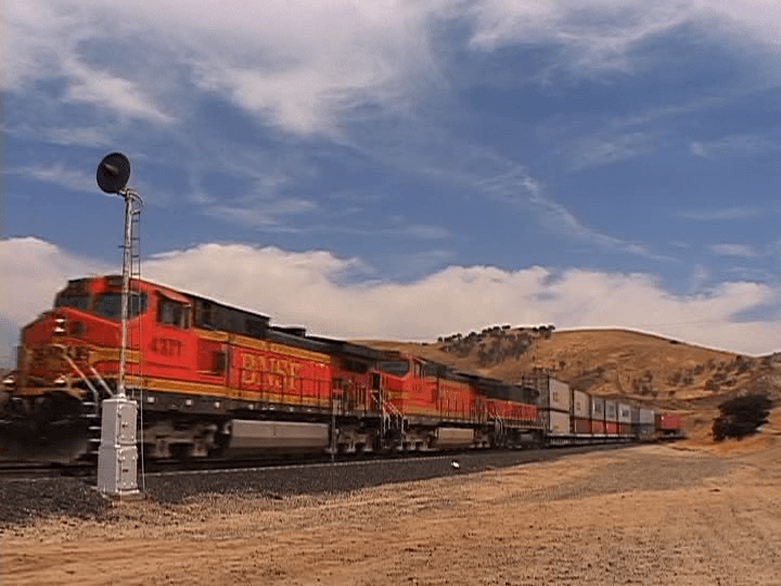 Ex, Warbonnet BNSF 742 rounds a curve near Woodard. 1:57 chapter 12