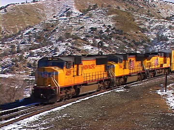 UP Manifest with 4059 on the point, is on Tehachapi Loop. Snow here is rare!