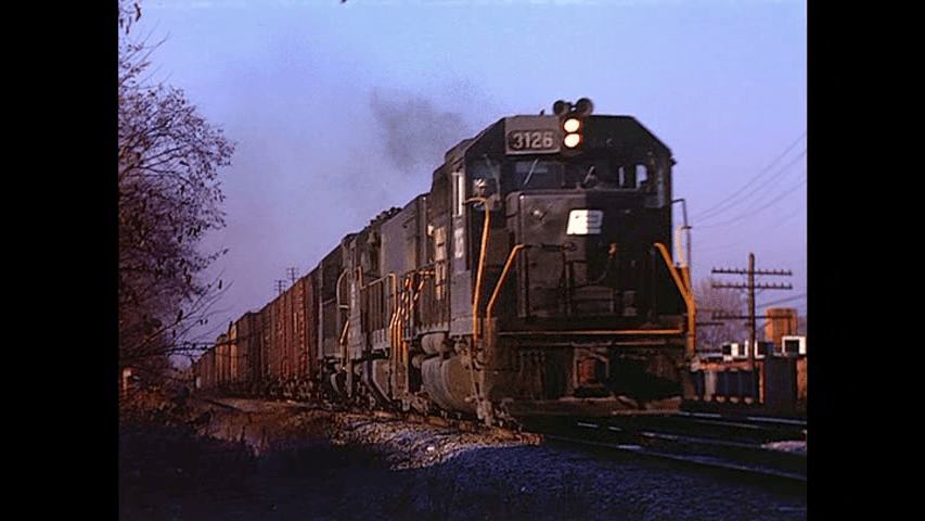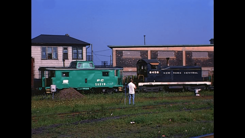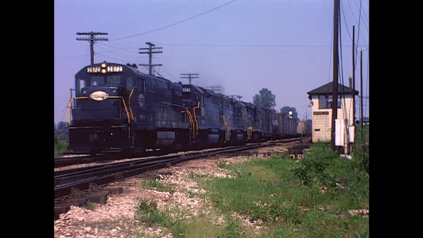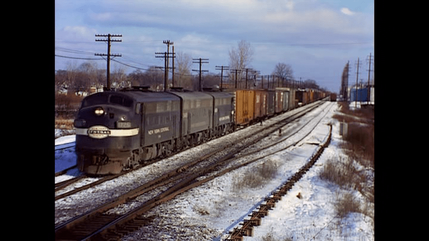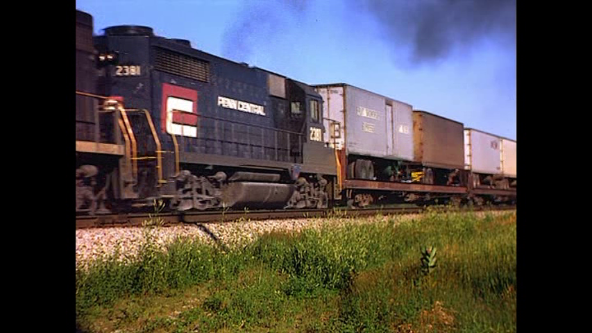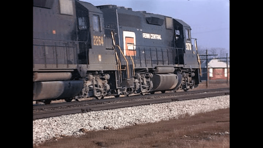 A fascinating mix of older freight cars. Model Railroaders should marvel at the clear images of colorful 40′ boxcars and a caboose on nearly every freight move. Look closely at the meat/ livestock trains. New York Central and Pennsylvania being common in the early years. Penn Central caboose fleet in fresh paint and some uncommon schemes.