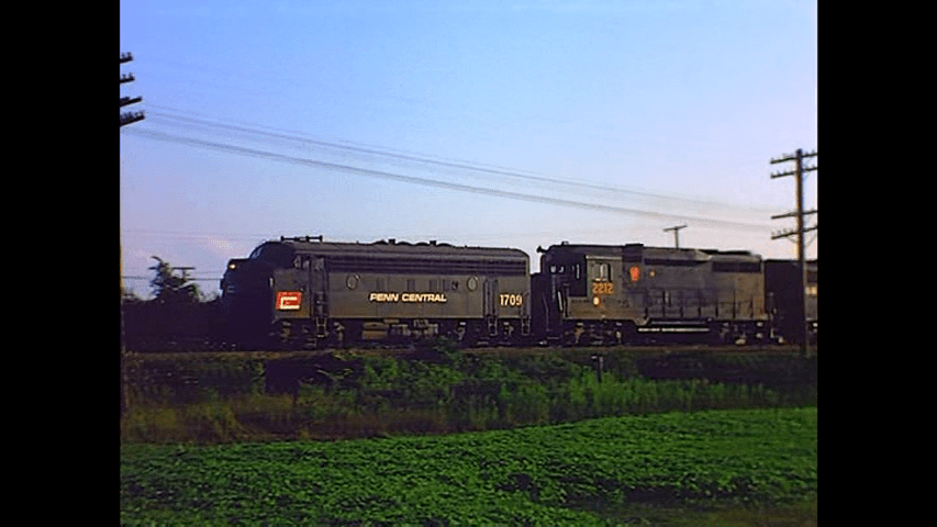 Meat trains were a priority. NY-4 Meat Train at Dearborn, Michigan. Penn Central EMD 3126 with livestock and refrigerator cars speeds past. The PC herald appears only 25 times in this 1968 footage. Fans of original New York Central and Pennsylvania have a plentiful supply in predecessor liveries.