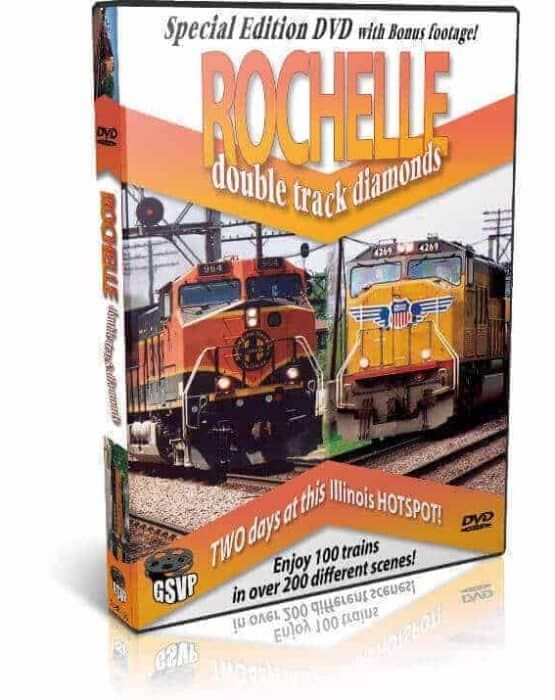 A 2 day visit to the vicinity of Rochelle, Illinois. See over 100 teains in 2 1/2 hours. Two intersecting sets of mainline trackage. Rochelle is a dependable hot spot. BNSF and Union Pacific run many trains through Rochelle, They were the first town to build a Railfan Park trackside. GSVP Special Edition has the additional hour of 2003 footage. Back to the feature show There are six minutes of ’93 footage which precedes the construction of the park there. It also features Chicago Northwestern because it is pre- merger to UP.